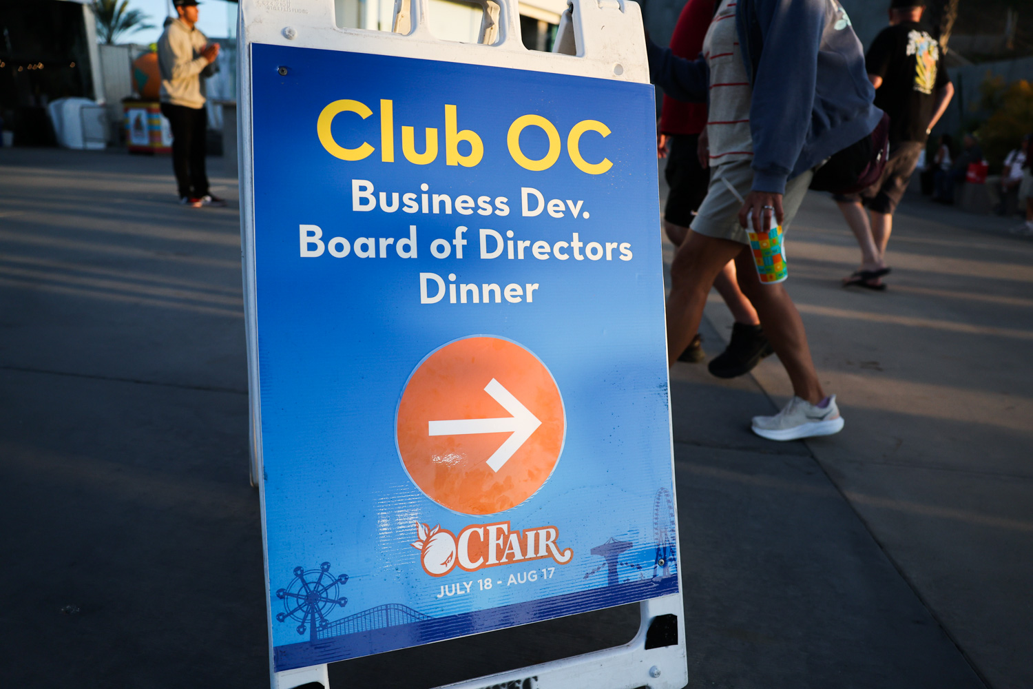 Signs lead to the Business Development Board of Director Dinner at the OC Fair on July 31, 2025. Credit: JULIE LEOPO, Voice of OC