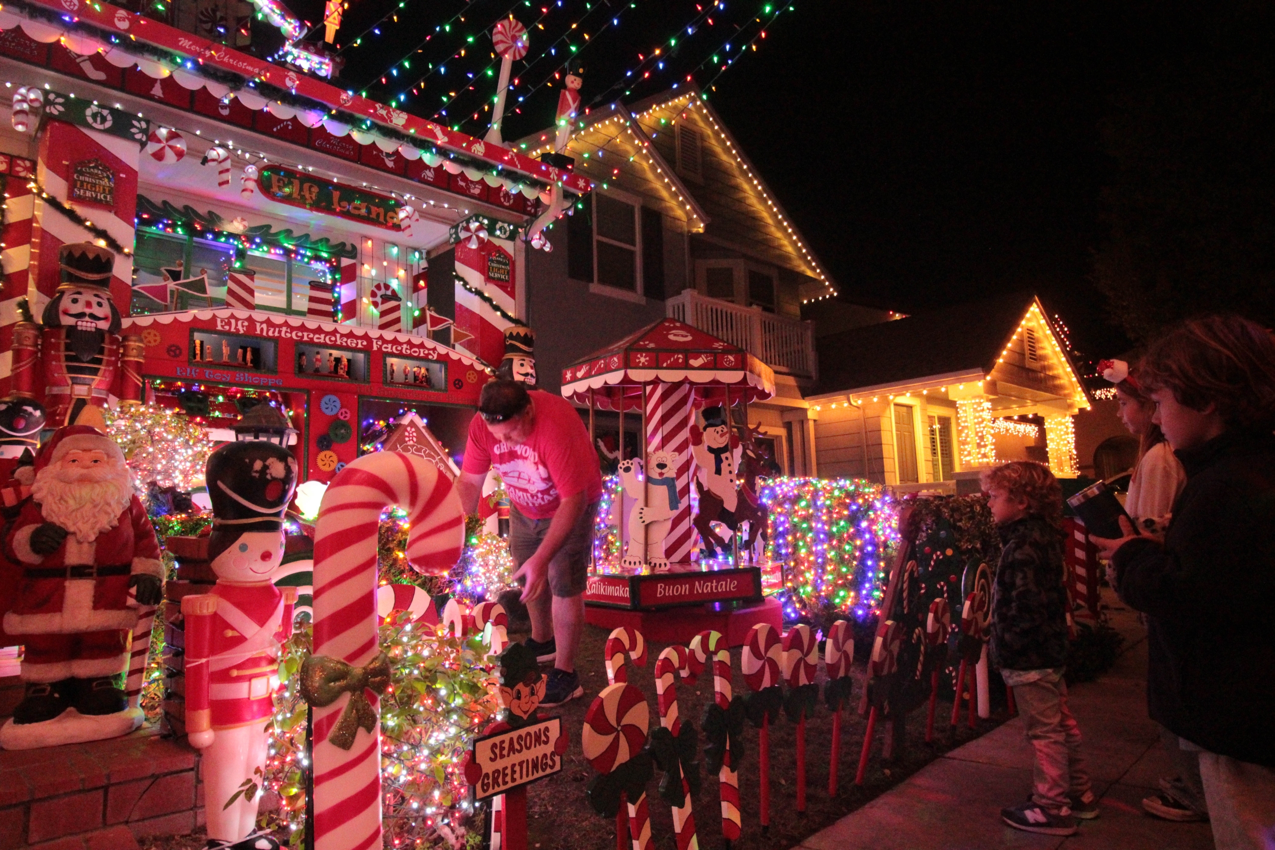 Ladera Ranch resident Tony Relvas sets up his”Christmas Town” display at his home while visitors watch on Sunday, Dec. 5, 2025. Credit: MAXIMO SANTANA, Voice of OC